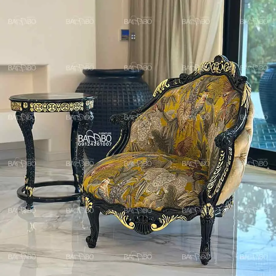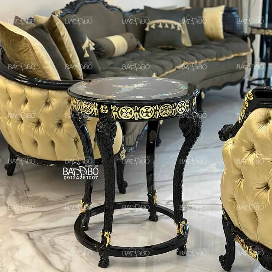 طلاکوبی : رنگ پلیاورتان بدنه با تکنیک طلاکوبی دستی تزئین شده که در کنار پارچه مخمل، جلوهای مشابه بهترین نمونههای مبل ترک را به نمایش میگذارد.