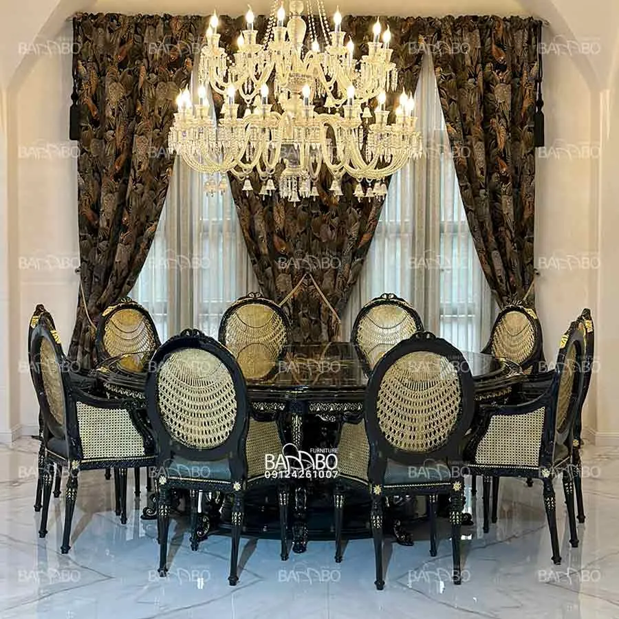 تمام جزئیات و منبتهای ظریف این ست کار دست استادکاران است که روی چوب سوپر راش گرجستان اجرا شدهاند.