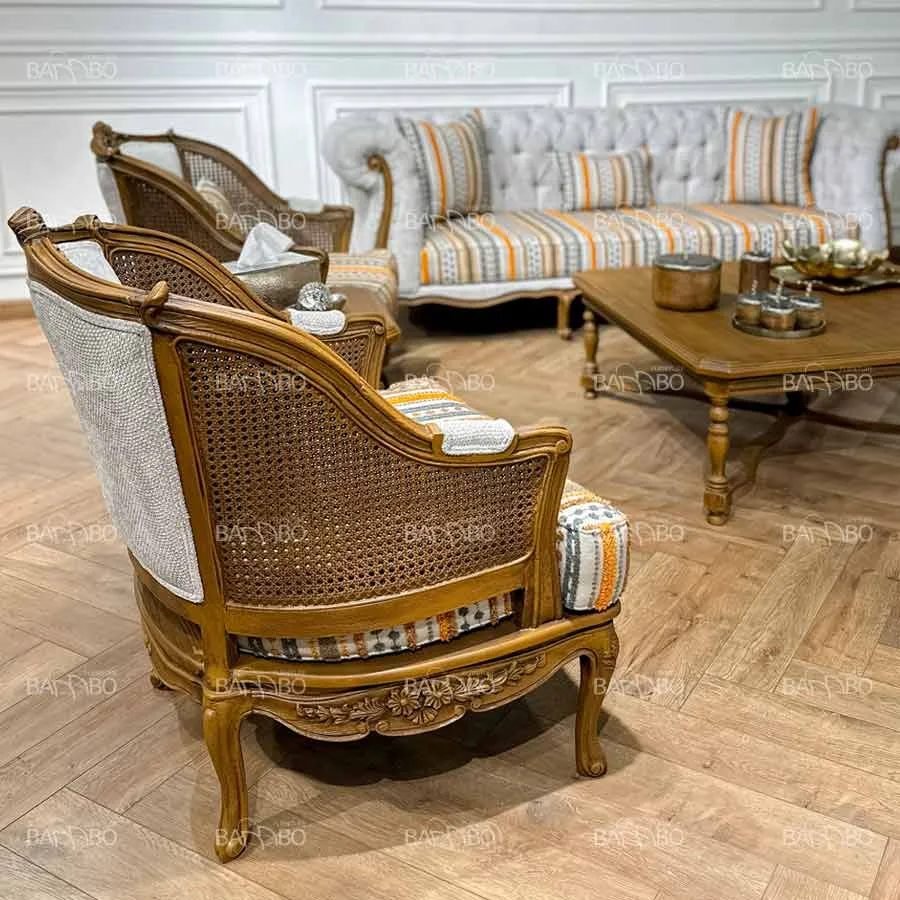 اگر به دنبال خلق فضایی آرام، روشن و در عین حال اشرافی هستید، ست برژه امپریوس انتخابی است که نمیتوان به سادگی از کنار آن گذشت. این کار با الهام از طراحیهای قرن هجدهم فرانسه و ترکیب آن با استانداردهای راحتی امروز، یکی از بهترین گزینهها برای خرید مبل کلاسیک با رویکردی مدرن است. استفاده از حصیربافیهای ظریف در بدنه و منبتهای ملایم، به این کار هویتی منحصربهفرد بخشیده است.