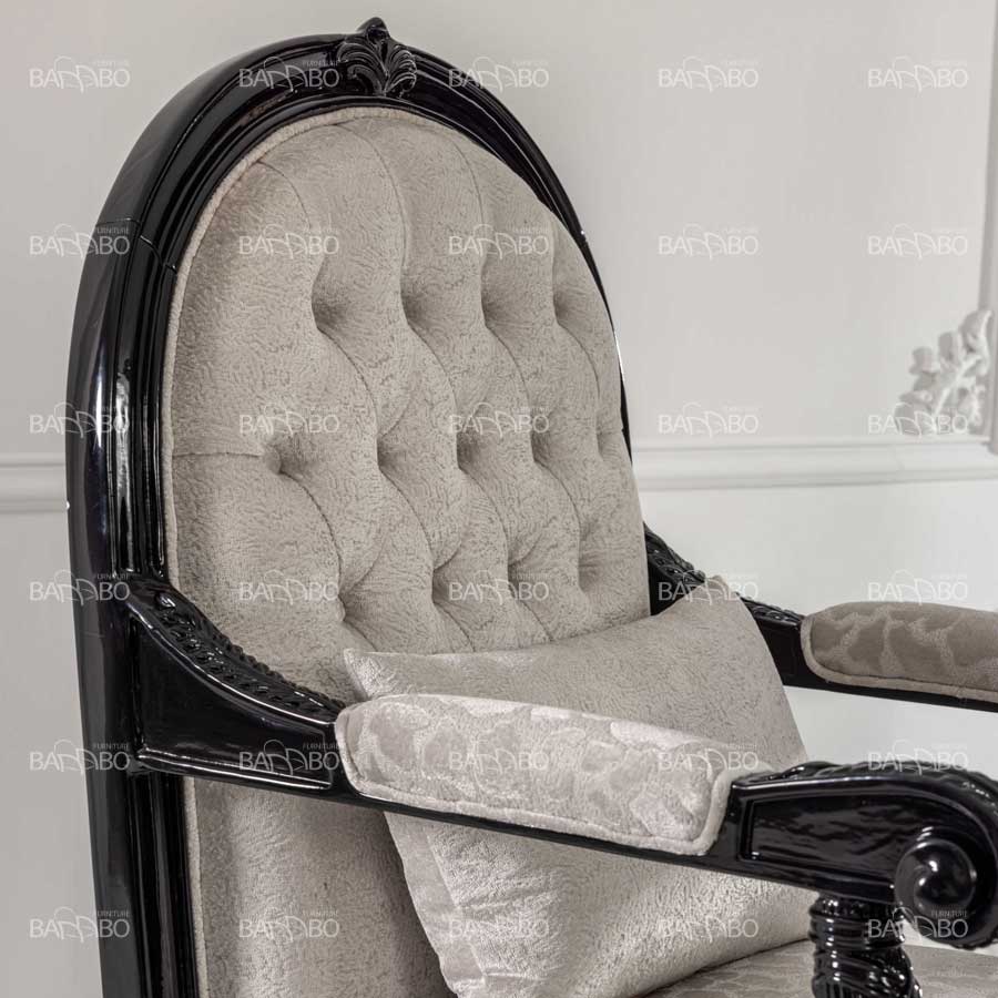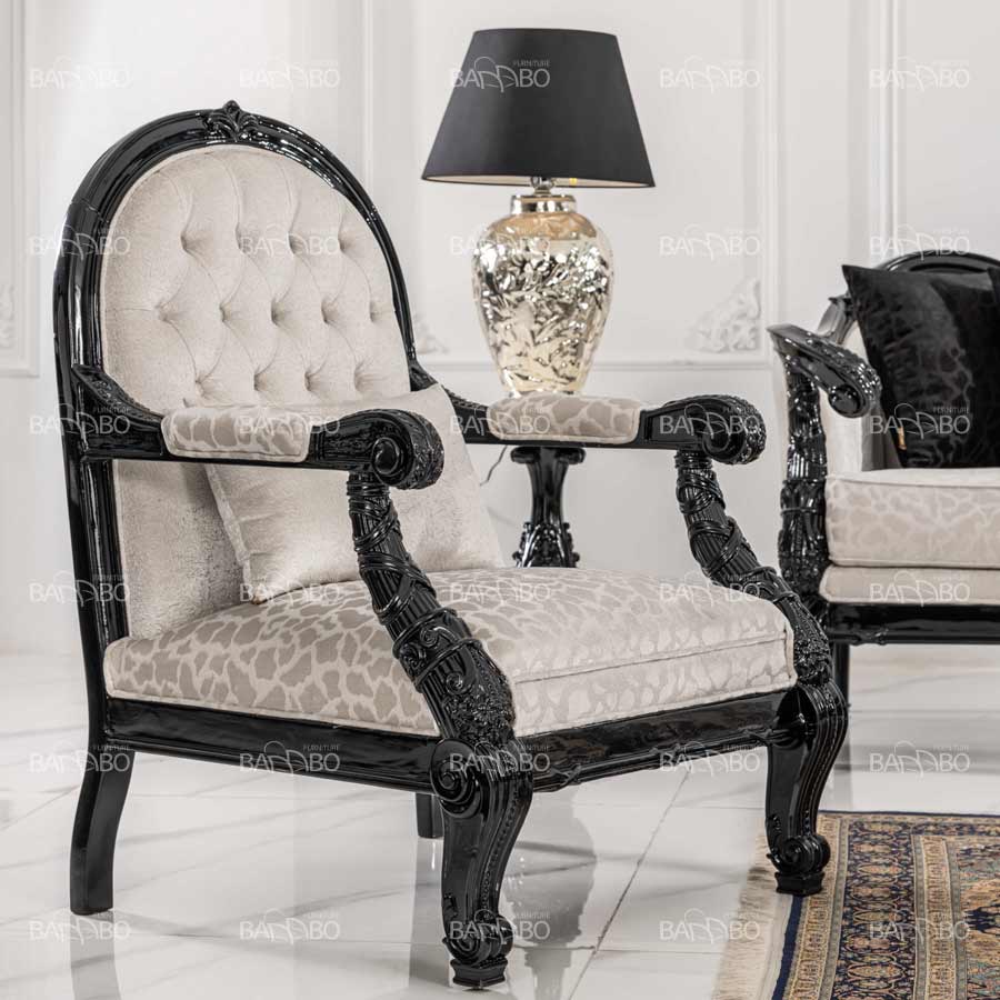 کاناپه و مبلهای تک در این مجموعه، نقطه کانونی طراحی هستند. بدنهی چوبی آنها که اغلب با منبتکاریهای ساده و در عین حال هنرمندانه تزئین شده، استحکام و زیبایی را همزمان به نمایش میگذارد. پایههای تراشخورده و دستههایی با انحنای ملایم، امضای سبک نئوکلاسیک را به همراه دارند. پارچههای مورد استفاده معمولاً از جنس مخمل یا کتان باکیفیت و در رنگهای خنثی هستند که راحتی و حس لوکس بودن را به ارمغان میآورند.